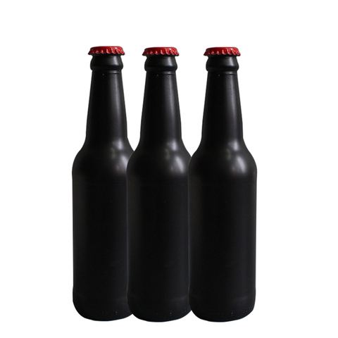 מסך הדפסה ידידותית לסביבה 330ml 500ml מט שחור חלבית מותאם אישית ריק זכוכית מיץ בקבוקי בירה עם כתר מתכת Caps